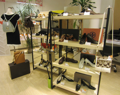 最近靴の入荷が相次いだので、ラックにレディースシューズを並べてコーナーを作ってみました。
