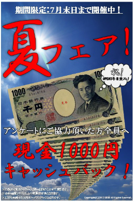 アンケートにご協力頂いた方全員へ現金1,000円キャッシュバック!