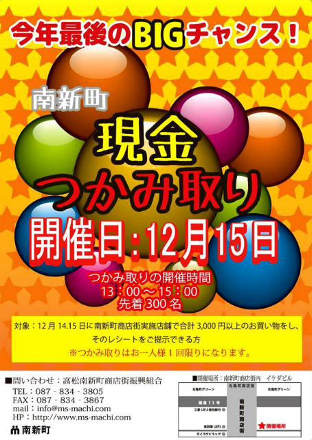 高松南新町商店街にて現金つかみ取りが開催されます!