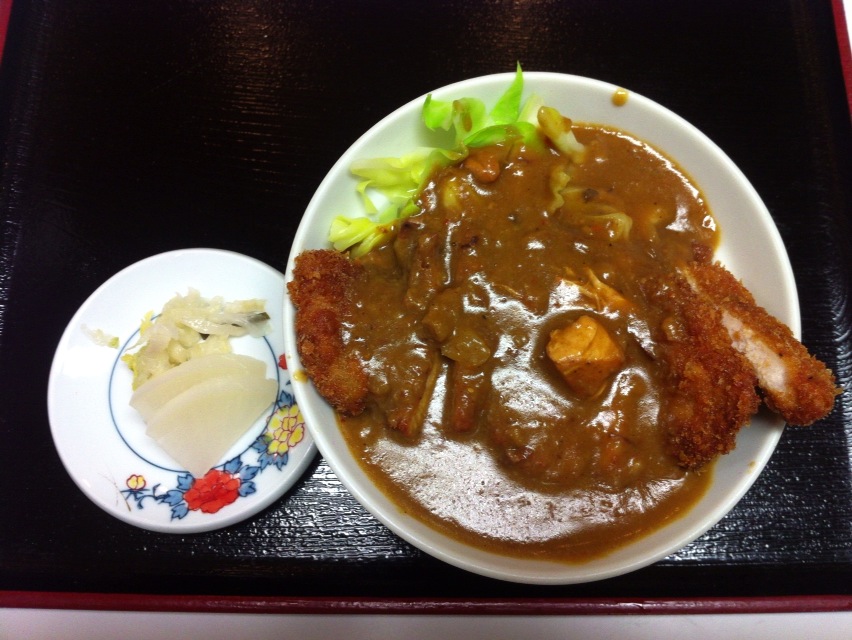 見た目も味もカツカレーです(笑)器と漬物が丼ということを思い出させてくれます。