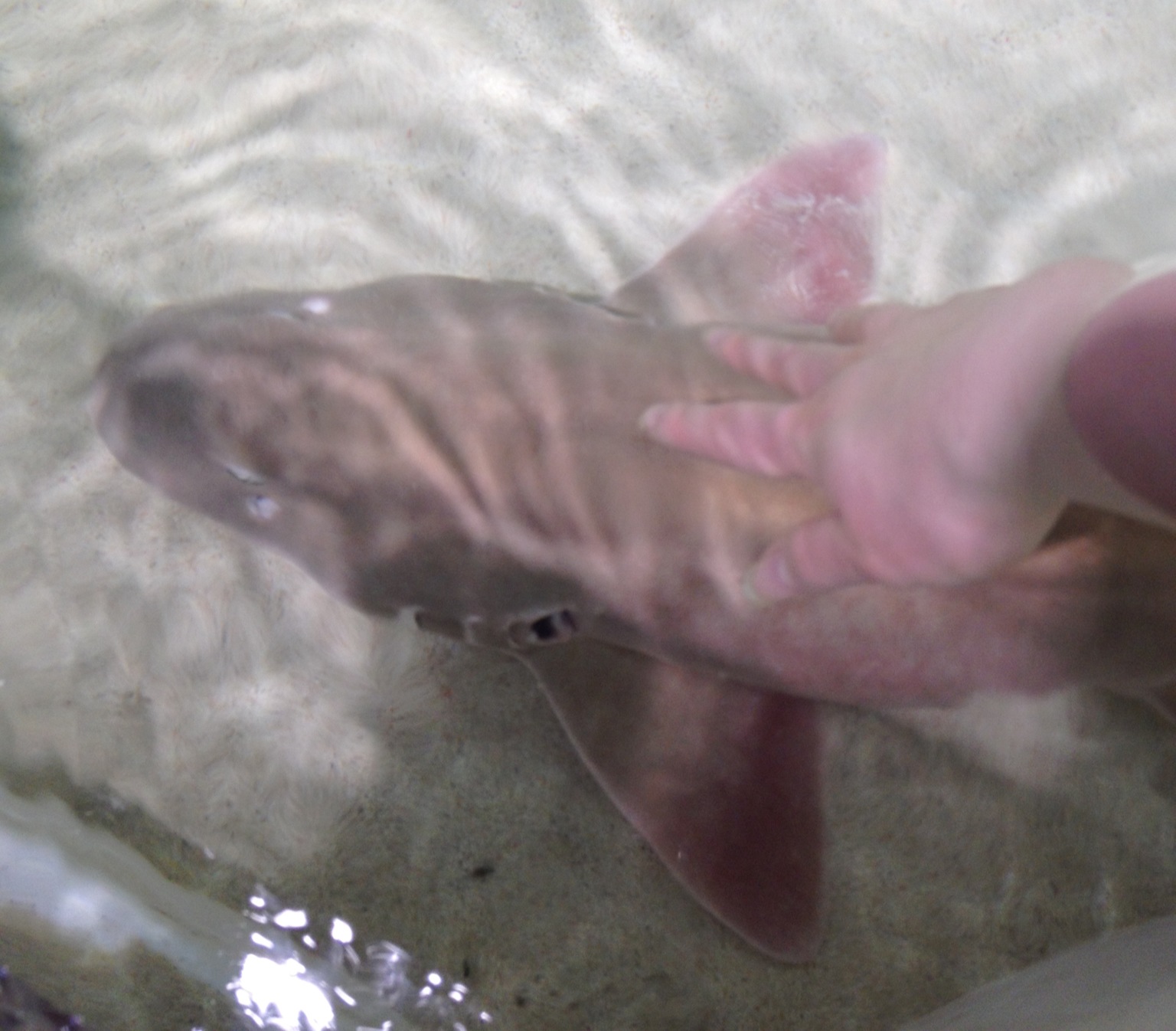 出口の手前でサメやエイを触れるコーナーもあって